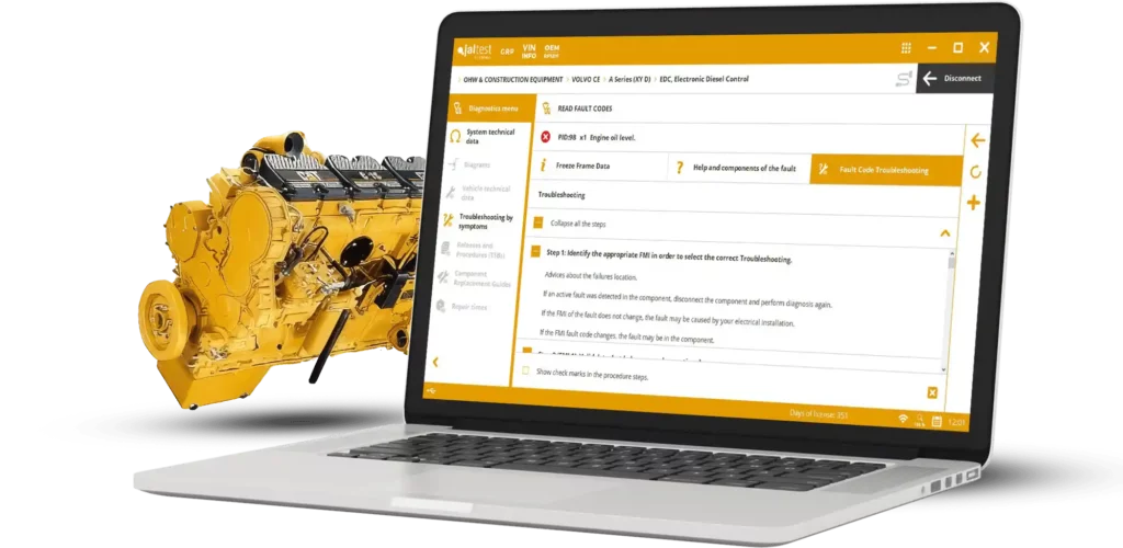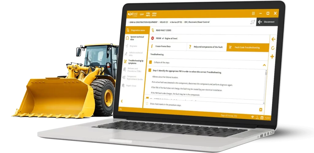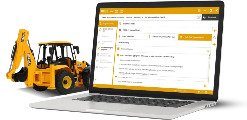 Jaltest info web de agridiag Info vous fournit un accès instantané à une base de données complète avec procédures de réparation, schémas de câblage et diagnostics pour une large gamme de machines de construction.